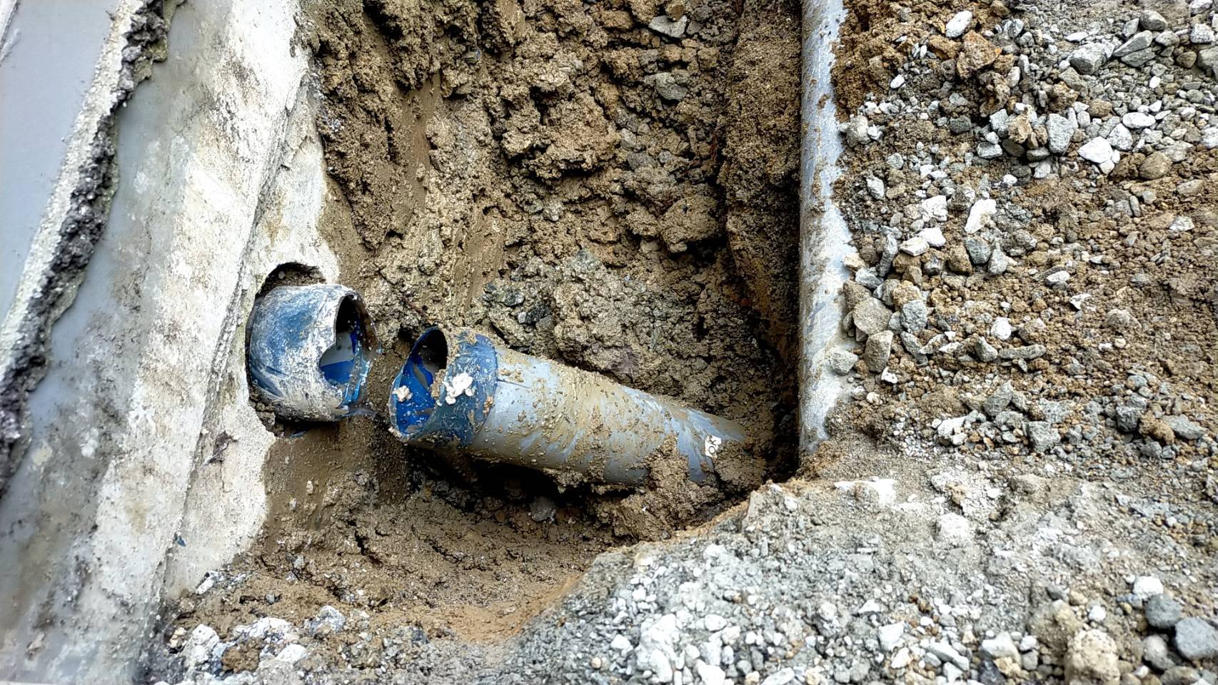 現場を確認すると、地中に埋設されていた排水管が劣化により破損し、漏水していることが判明。今回はその緊急対応として、破損箇所の特定・掘削・交換・接続までをスピーディーに行いました。